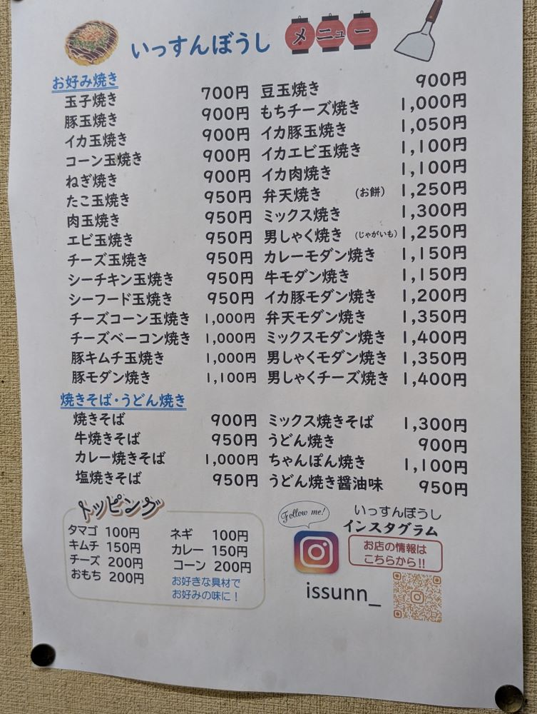 Instagram:いっすんぼうし ※土日は昼から営業しているようでストーリー動画から確認できます。