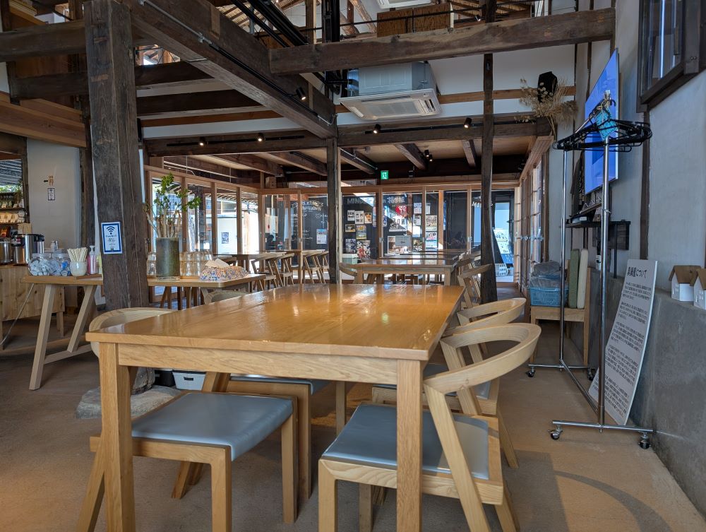 メ モ:事前支払いのお店で、ソファ席(2つ)とテーブル席があります。ランチは月替わりメニューと週替わりメニューがあります。インスタグラム、ホームページでメニューを確認できます。地域交流拠点施設「真鍋屋」の中にあり、施設横に駐車場があります。道が狭いので気をつけてください。